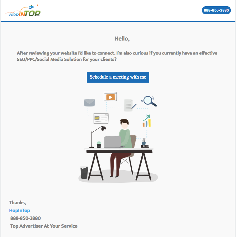 I’m shocked at what HopInTop digital marketing services has done for my clients, and I’m excited to see what the team will do for in the near future. The service took about a week or two to warm up and now were going at full steam. I am already reaping the benefits of this service.